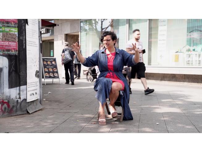 Als letztes Jahr das Projekt der Signa Holding am Hermannplatz vorgestellt wurde mit der Idee der Rekonstruktion an diesem Ort, dachte ich, das kann doch nicht wahr sein. Das war erst mal ein Schock. Zwei Tage nach der Präsentation in der BVV [Bezirksverordnetenversammlung], die ja auch in den Medien besprochen wurde – allerdings nur pressemitteilungsmäßig, das und das wird geplant, das wäre eine große Chance und so weiter –, zwei Tage danach wurde das Ibiza-Video veröffentlicht. In diesem Ibiza-Video wurde der Name derjenigen Person genannt, die hinter der Signa Holding steht, und zwar René Benko. Er wurde von Heinz-Christian Strache erwähnt als einer der mutmaßlichen illegalen Großspender an die extrem rechte FPÖ, also an die österreichischen extrem Rechten. Da war für mich klar, nee, jetzt wird nicht mehr nur gemeckert, sondern jetzt musst du was machen. Das war dann zu viel. Nicht nur neoliberal, nicht nur konservative Rekonstruktion, sondern auch noch extrem rechte Diskurse! Mir hat schon gereicht, dass dieser Name in diesem Video auftaucht. Weil das diejenigen hier in unserem Kiez ermutigt, die jetzt schon Anschläge verüben. Das war der Moment, in dem ich aktiv geworden bin und die Kontakte, die ich in den stadtpolitischen Initiativen hatte, angeschrieben hab: Hey, lasst uns gemeinsam was machen. Dann hab ich meine ersten Recherchen vorgetragen, mit Baby in der Babytrage, weil ich in Elternzeit war. Die Initiative hat sich sehr schnell gegründet und besteht immer noch. Wir haben uns das Ganze angeschaut und versucht zu verstehen. Es ist einfach unglaublich, wie viele Ebenen hier zusammenkommen, die problematisch sind: Es ist nicht nur ein Investor, der Profit machen will, es ist ein Investor, der mit Selbstbewusstsein und Selbstvertrauen nach vorne tritt und das mit Stolz verkündet. Es ist nicht nur, dass hier der Boden verwertet wird, es wird auch Geschichte verwertet. Es ist nicht nur, dass hier ein Großprojekt entsteht, mit dem die Verdrängung noch mal potenziert wird – Verdrängung von Mieterinnen und Mietern, Verdrängung von Gewerbe –, sondern es ist ein Großprojekt, das vor allen Dingen migrantisches Gewerbe verdrängen wird. Das ist eine Holding, die nicht nur irgendwie Hunderte von Tochterfirmen hat, wo man nicht weiß, woher kommt denn das Geld eigentlich genau. Sondern das ist eine Holding, die im Aufsichtsrat Spitzenpolitiker*innen von der FPÖ sitzen hat, die man schon lange rechtsextrem nennen darf.