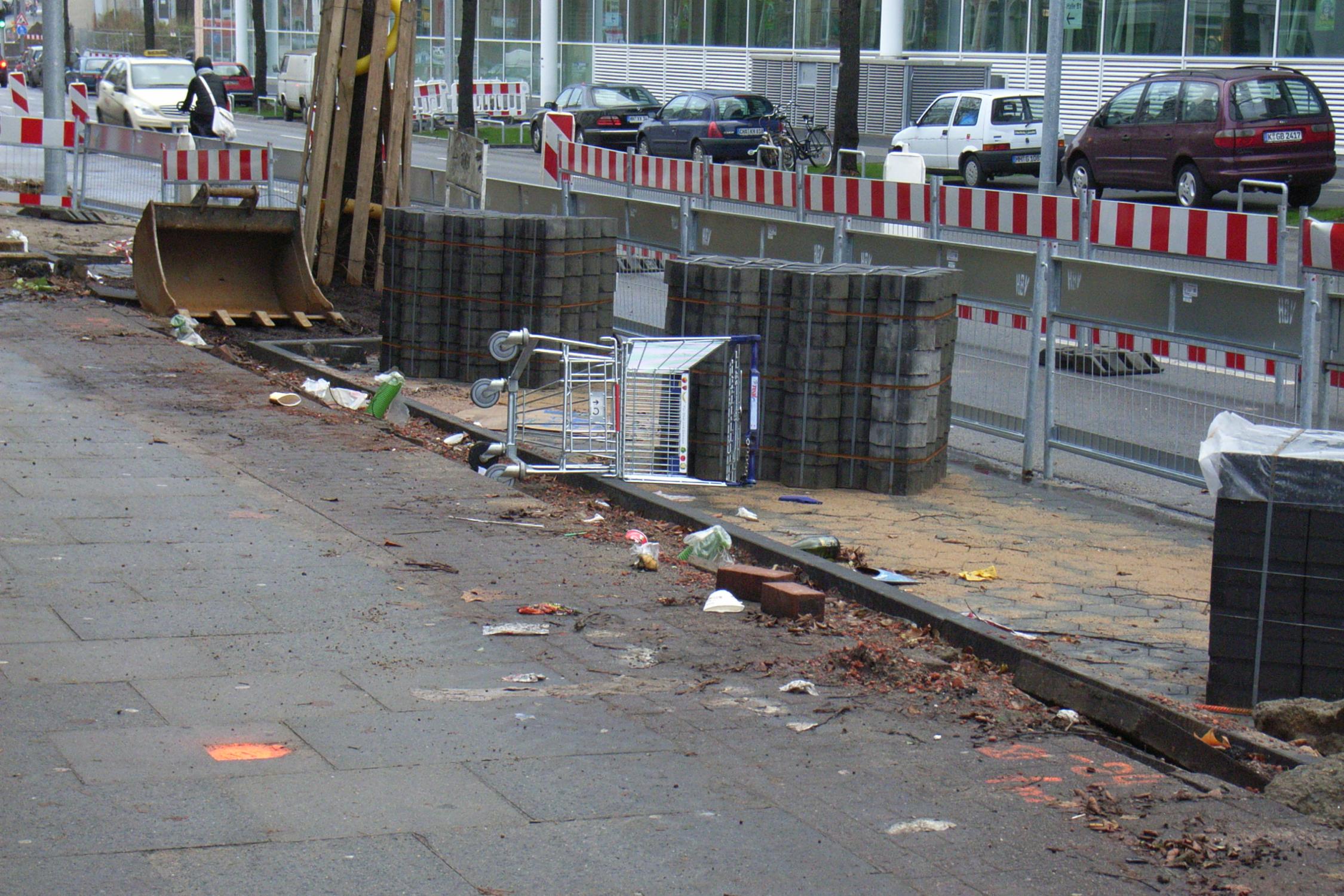 Sechser Inflationär verbreitet: gepinselte Sechsen auf temporärem Stadtmobiliar.