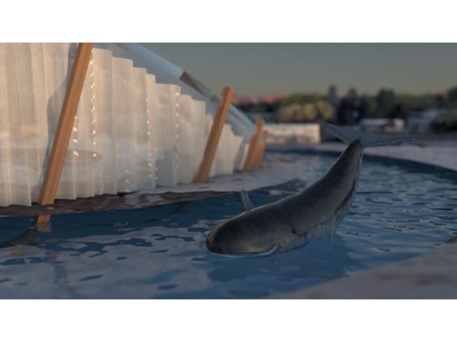 Die luftige, einladende Architektur aus Glas und Holz sorgt für viel Privatheit und Ruhe. In konzentrischen Kreisen angeordnet ermöglichen die verschiedene Heilbecken, deren Wasserqualität bis zur optimalen Wasserqualität im mittleren Becken zunimmt, eine behutsame Heranführung an das bestmögliche Walhabitat. All das macht die Rehaklinik zu einem noch nie dagewesem Ort. Die vom Plastikmüll, Fischfang und von Lärmverschmutzung gestressten Tiere finden im südlichen Neukölln die optimalen Bedingungen sich vom Meeresalltag zu erholen. Ein Mindestaufenthalt von 14 Tagen wird empfohlen, optimale und langanhaltende Resultate erzielt man mit einer Aufenthaltsdauer von 6-8 Wochen. Der Besuch der Klinik ist über den Wasserzubringer (ehemals A100) möglich.