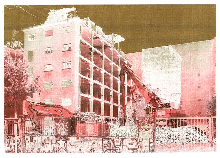 Thomas Monses Ninja Machiyasübrig gebliebene Haussilhouetten, die sich auf den benachbarten Fassaden abzeichnen und erkennen lassenhaben wir bereits einmal bei 99% Urban gezeigt, nun hat er mehrere Editionen dieser Motive mit einem Risographen gedruckt, die wir exklusiv bei 99% Urban zeigen und zum Verkauf anbieten.