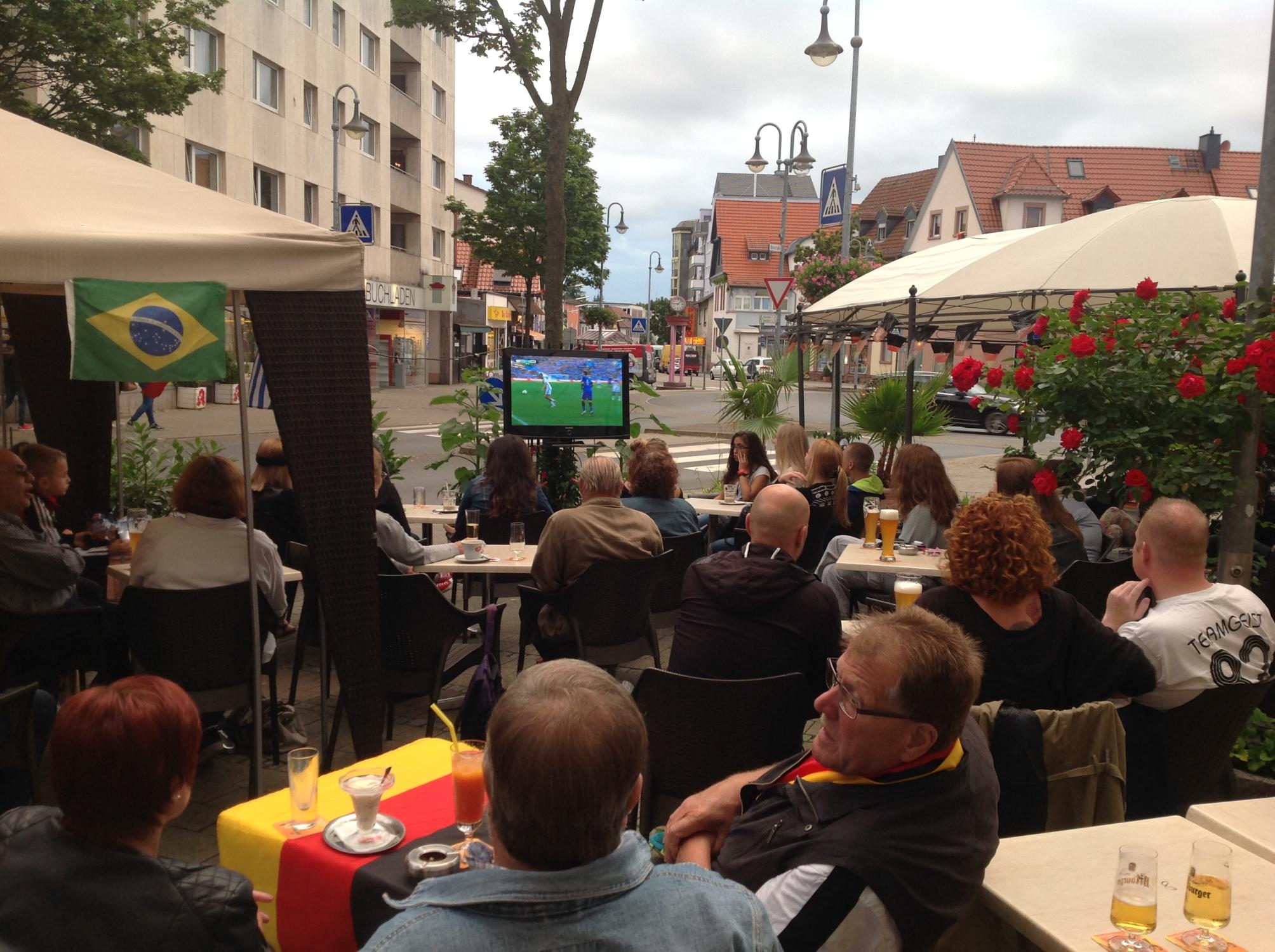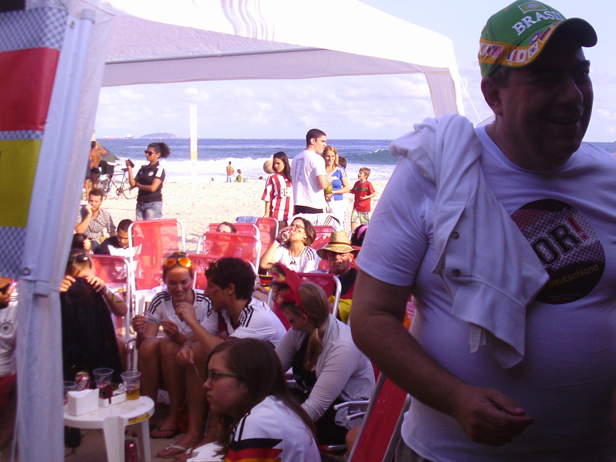 Im gleißenden Licht der brasilianischen Sonne wirkt das Szenario surreal. Genau wie die Preise, die in den vergangenen Monaten höher gestiegen sind als die Luftballons, die heute das Fanfest weithin sichtbar markieren. In den sozialen Netzwerken kursiert seit Anfang des Jahres eine Banknote mit Dali-Konterfei, auch „Surreal“ genannt in Anspielung auf die hiesige Währung „Real“. Vor der Viersternekulisse der Copacabana sind die Straßenhändler dem Fanshop gewichen, dessen plüschige Fuleco-Türme an Schießbudenfiguren erinnern. Auf der Mauer nebenan auf einmal die Frage, die schon damals in der Luft lag: „Copa pra quem?“. Für wen ist diese Copa? Ich frage mich: Wer war eigentlich damals beim Dorffest mit dabei?