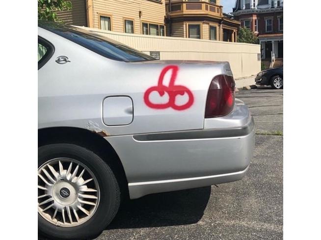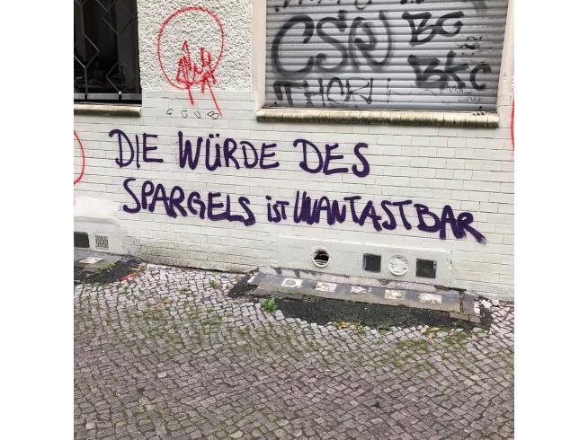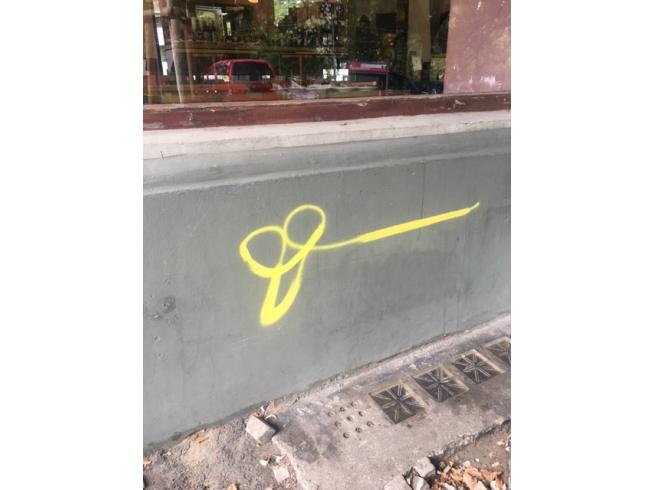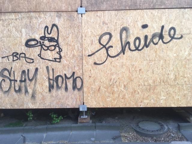 Sechser Inflationär verbreitet: gepinselte Sechsen auf temporärem Stadtmobiliar.