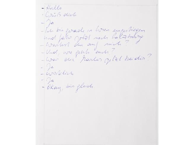 Den Künstler interessiert dabei der Kontrast zwischen den so freimütig mitgeteilten und „nutzlosen“ Informationen und der ökonomischen Verwertbarkeit dieser Daten in anderen Zusammenhängen. Obwohl die belauschten Gespräche in ökonomischer Hinsicht unbrauchbar sind, generieren sie seiner Meinung dennoch einen Mehrwert: „Betrachtet man die Mitschriften, so beginnt man automatisch ein Narrativ zu konstruieren. Es entstehen Geschichten, die mehr noch als über die telefonierende Person, etwas über den Betrachter selbst aussagen“, heißt es auf seiner Webseite. Dem kann ich nur zustimmen (und fühle mich ein bisschen ertappt dabei).