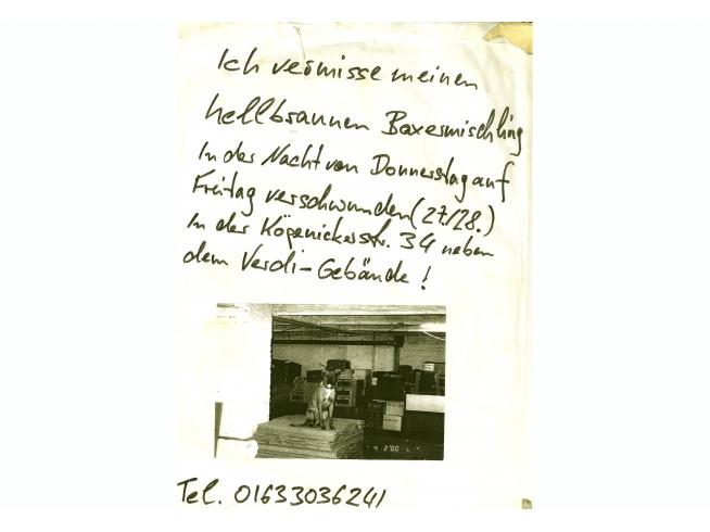 Carsten Zimmer und Till Sträter haben über fünf Jahre Vermisstenzettel für Haustiere rund um den Görlitzer Park gesammelt.