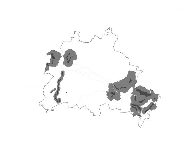 Um Schutzgesetze nicht länger als reine Restriktion aufzufassen, sondern um mögliche Potentiale aufzudecken, versuchen die folgenden Karten als Grundlage eines solchen Denkmodells die in Berlin entsprechend regulierten Zonen darzustellen und ihre jeweilige Bedeutung zu beschreiben. Untersuchungsgegenstand sind hierbei ausschließlich Schutzzonen, die kartographisch festgeschrieben erfassbar sind.