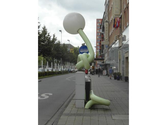 Alle zehn Jahre finden in Münster die Skulptur Projekte statt. Das ist eine Art Freiluftausstellung, die darauf abzielt, „nicht nur mit Kunst, sondern auch für Kunst eine Öffentlichkeit zu schaffen.“[1] Über den Sommer lang sind die Kunstwerke in der ganzen Stadt verteilt und für alle zugänglich. Einige Arbeiten sind nur temporär in der Stadt, während andere dauerhaft im Stadtbild verbleiben. Weil es die Skulptur Projekte seit 1977gibt, haben sich so einige Skulpturen angesammelt. Wenn man in die Stadt kommt, stellt sich daher eine ganz besondere Aufmerksamkeit ein und man geht mit offenem Blick umher immer mit der Frage im Kopf: Ist das zeitgenössische Kunst, Stadt-Deko, Straßenbeleuchtung oder Werbung? Ich mochte es sehr mit dieser geschärften Wahrnehmung durch die Stadt zu gehen, zu gucken und unterschiedlichstes zu entdecken. Was ich auch mochte: dass man an Orte geführt wurde, die man gewöhnlich nicht betreten würde - den verfallenen Eis-Palast im Norden der Stadt, die Eingangshalle der Landesbausparkasse West, die Elephant Lounge mitten in der City. So schärft die Kunst den Blick für die Stadt und umgekehrt. Eine ziemlich fruchtbare Mischung.