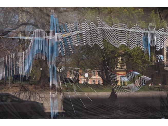 Du meinst, dass die CUTS eigentlich nicht an der Glasscheibe aufhören, sondern dass die Arbeit sich ausdehnt in alle Richtungen? Genau so ist es gedacht, ich finde das eine schöne Vorstellung. Die Fotos zeigen deutlich, dass sich einerseits der Vordergrund auf der Scheibe widerspiegelt und andererseits, dass man den Innenraum sieht, wenn man genau hinschaut. Es hängt stark von der Perspektive ab, wie sich das Bild verändert, auch je nach Lichteinfall.