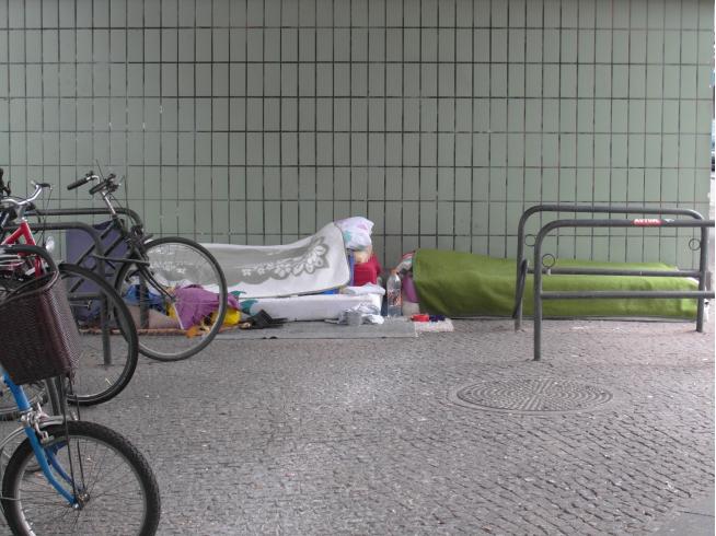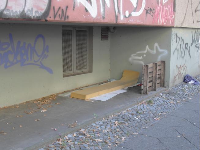 Auch wenn bei diesen Unterkünften das klassische Dach meistens fehlt, handelt es sich um Schlafplätze von Menschen. Manche sind sehr gut zugänglichen, andere etwas versteckter, aber die meisten befinden sich an erstaunlich öffentlichen Orten, wie dem Französischen Dom, dem Kulturforum, dem Görlitzer Bahnhof oder dem Park um die Ecke. Die Öffentlichkeit kann zur Bedrohung werden, aber in den meisten Fällen bietet sie auch Schutz. Entscheidend ist, dass die Obdachlosenbleiben von Gärtner*innen, Sicherheitsdiensten oder Anwohner*innen geduldet werden, dann kann so etwas wie eine provisorische Ko-Existenz entstehen.