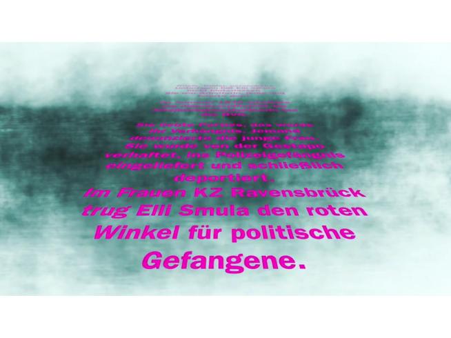 Elli Smula arbeitete als dienstverpflichtete Straßenbahnschaffnerin bei der BVG. Sie trägt den roten Winkel für politische Gefangene im Frauen KZ Ravensbrück. In der Zugangsliste vom 30. November 1940 hat sie die Nummer 11 mit dem Zusatzvermerk: lesbisch. Die junge Frau stirbt im KZ unter ungeklärten Umständen. Für Elli Smula hat Marion Fabian erstmals eine visuelle Übersetzung der aktustischen Stolpersteine entwickelt, die hier angeschaut werden kann.