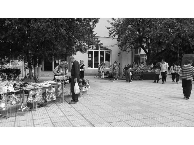 Dienstleistungen anbieten. Dies sind Banken, Geldtransfer- und Geldwechseleinrichtungen, die sich entlang der Hauptstraße aneinanderreihen. Der restliche Teil der Innenstadt, rund um den Park, besteht mehrheitlich aus Wohnblocks, in denen ein Drittel der Wohnungen temporär leerstehen.[14] Der Hauptgrund für den Leerstand ist das Zwischenspiel von Auswanderung und Rückkehr. Folglich wird der Stadtraum durch das Warten und die daraus resultierenden Beziehungen in hohem Maße geprägt.