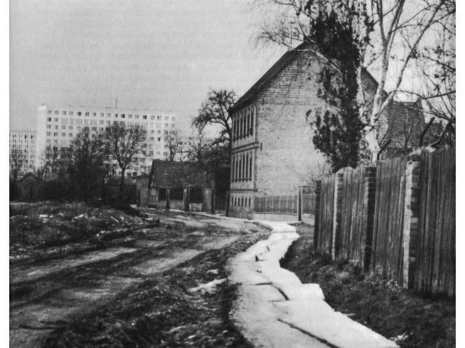 Heute, mehr als zwanzig Jahre nach dem Zusammenbruch der DDR, bietet sich mir ein anderes Bild. Die kleinteiligen Strukturen am Rande prosperieren, während sich die Idee der Großsiedlung scheinbar überholt hat. Die proklamierte kollektive Aufbruchsstimmung ist dem Kleinbürgerlichen und seinen schlimmen Facetten gewichen. Beschränkten sich die Individualisierungsmöglichkeiten im standardisierten Plattenbau nach außen lediglich auf die Gestaltung des Balkons, so eignet sich der Traum vom Eigenheim - in Fertigbauweise und mit Carport - wesentlich besser zur Schaustellung persönlicher Vorlieben. Und das immer in Sichtweite zu den Plattenbaumonumenten von einst!