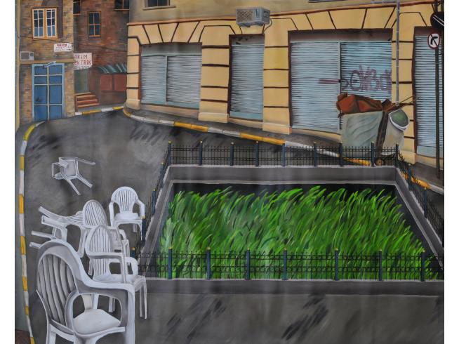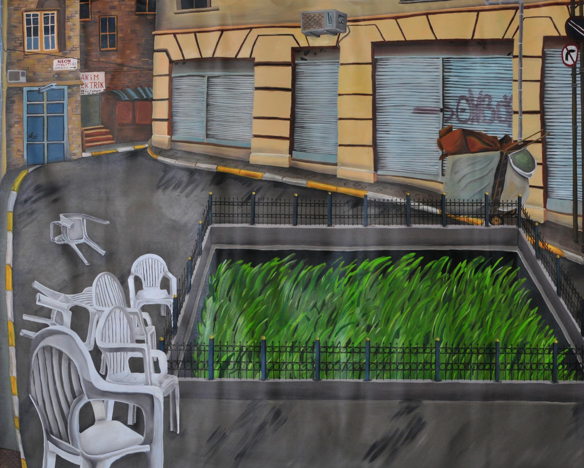 Ein geheimes Wunschdenken in Istanbul war immer alleine zu sein, weil man es nie ist –man ist immer umgeben von eine enormen Masse an Menschen, Autos und Geräuschen. Es gibt keine nennenswerten Rückzugsräume. Es wäre schön, in der Gasse neben dem Gras alleine auf einem Plastestuhl zu sitzen und nichts zu hören.