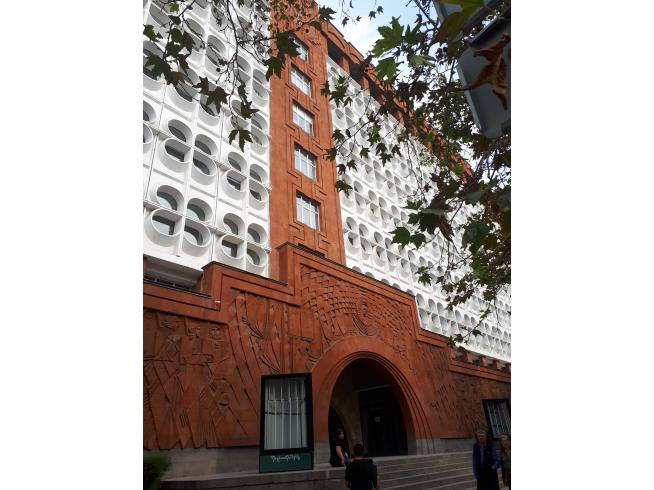 Eine Sonderausstellung ist dem Regisseur Sergei Paradschanow gewidmet, der vor 100 Jahren geboren wurde und mit dem Film Die Farbe des Granatapfels (1969) bekannt geworden ist. Sie zeigt immer wieder sein markante Porträt: eine rundliches Gesicht mit Vollbart und markanten Augenbrauen. Auf einigen wird er umgeben von leicht bekleideten Frauen gezeigt. Als ich zu Hause bin, recherchiere ich zu seiner Biografie und bin überrascht zu erfahren, dass er unter anderem wegen seiner Bisexualiät verhaftet und daran gehindert wurde, weitere Filme zu machen. Warum wurde das in der Ausstellung nicht erwähnt? Ich muss an das Gespräch mit dem Künstler Goran Tomcic denken, das wir mit ihm in seiner Ausstellung im DDD Kunst House geführt haben. Weil er seine Homosexualität erwähnt hat, fragen wir ihn nach seinen Erfahrungen in Jerevan und er erzählt, dass er bei einer Trans-Party war, zu der er sich angemeldet hat und bei der er sich ausweisen musste. Natürlich gibt es also auch hier eine Szene, die jedoch kaum sichtbar agiert und sich offenbar gut schützen muss.