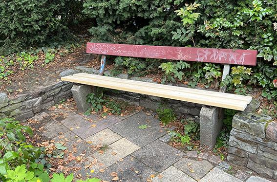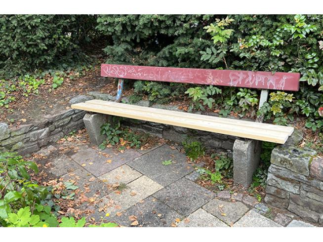 A square for four people to be seated, relax and discuss. Now this central function is gone since the benches are missing their seats.