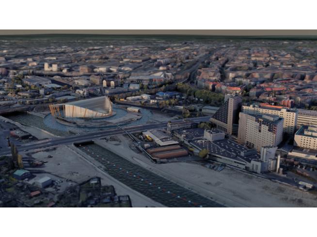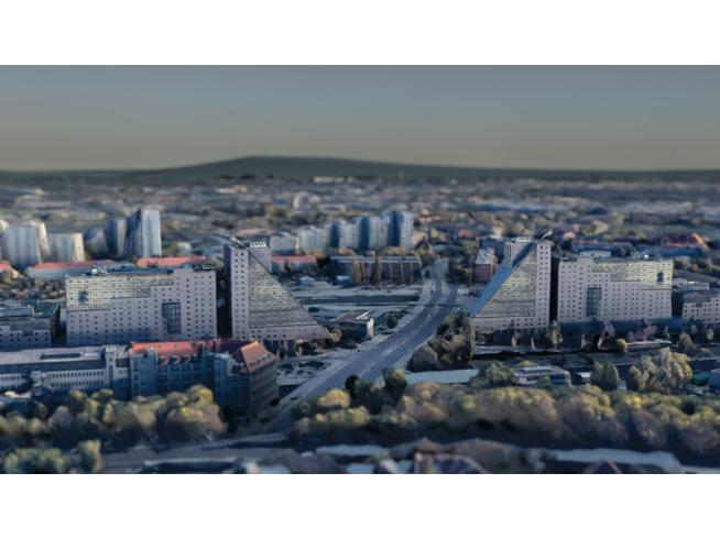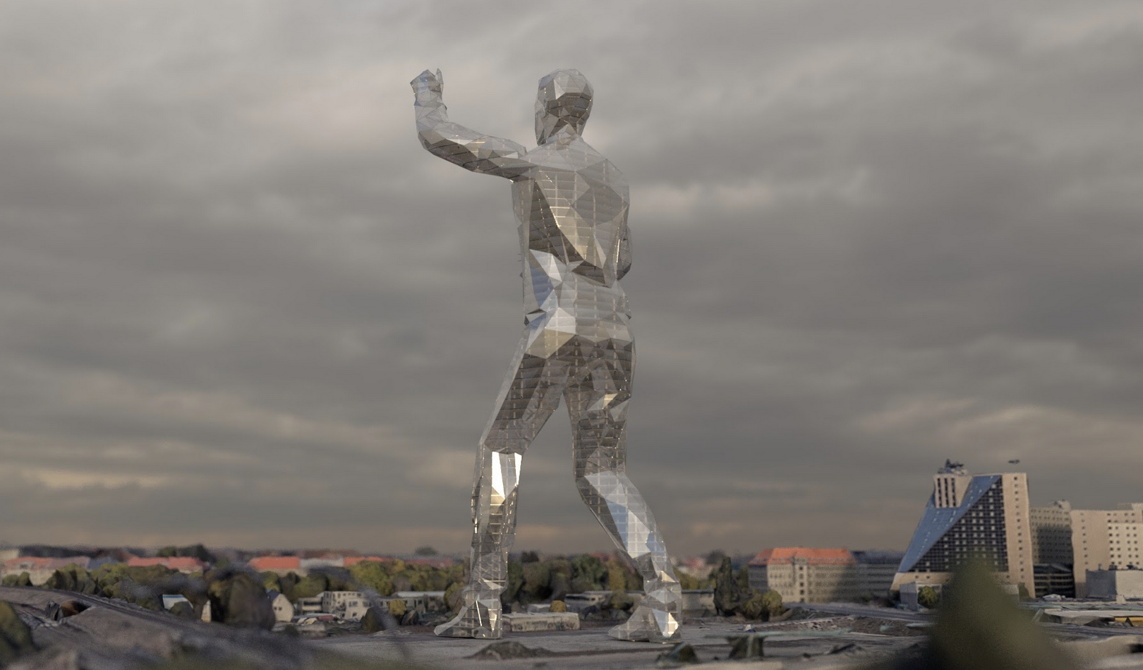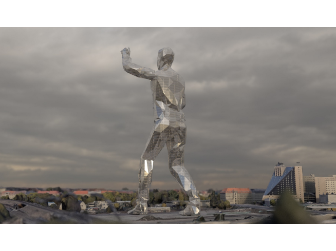 Das 175 m hohe Bauwerk ist ein Hybrid aus Gebäude und Statue und ist dadurch auch die zweit höchste Statue der Welt, nach der Statue der Einheit in Indien. Im Kopf befindet sich eine sky lounge, diese ist sowohl vom Boden aus, als auch mit dem Helikopter über die rechte Hand erreichbar. Die linke Hand winkt Richtung Potsdamer Platz. Die Fassade erzeugt durch die gefalzten Oberflächen der Fassadenelemente bei jedem Sonnenstand ein anderes Licht- und Schattenspiel, bis hin zu Moiré-Effekten. Die Statue of Streletzki ist die Landmarke an der Schnittstelle zwischen der inneren und äußeren Stadt, von den Neuköllner*innen liebevoll ‘Ekke’ genannt.
