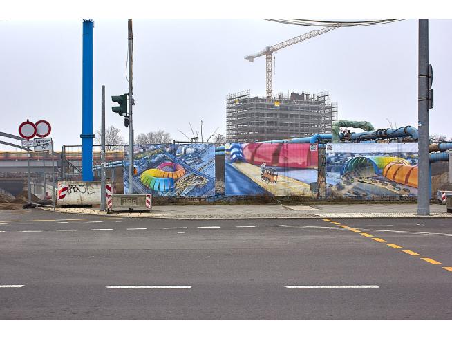 PROBLEM PROPERTY ist ein Kunstprojekt zur kritischen Begleitung aktueller Berliner Bauprojekte, das mit konkreten Gegenvorschlägen zum Erweiterungsbau des Estrel Hotels in Neukölln begonnen hat. Obwohl Bauvorhaben häufig weitreichende Konsequenzen für das Stadtbild mit sich bringen, finden die sie ermöglichenden Weichenstellungen oft unter Ausschluss der Öffentlichkeit statt. Die Initiator*innen wollen mit ihren Plakataktionen die entscheidenden Fragen zu diesen Bauvorhaben in die Öffentlichkeit tragen und damit verhandelbar machen: Für wen sind die Gebäude zugänglich? Wer kann sich die Miete leisten? Wie sind die architektonischen Entscheidungen zustande gekommen? (Die deutliche Überschreitung der Traufhöhe (also die maximal erlaubte Bauhöhe im jeweiligen Stadtteil) beim geplanten Estrel Tower in Neukölln ist zum Beispiel ein Indiz für die engen Verflechtungen von Wirtschaft und Politik). Die entwickelten Gegenvorschläge werden als digital erzeugte Renderings auf Bannerstoff gedruckt und im öffentlichen Raum am jeweiligen Baugrundstück an den Bauzäunen angebracht. Es sind fiktive Architekturen, die sowohl visionär als auch dystopisch sind. Sie können im positiven Sinne die Fantasie beflügeln, aber vor allem entlarven sie die großmaßstäblichen Dimensionen, mit denen diese Bauvorhaben einhergehen, sowie die luftigen (Marketingsprech-)Versprechen, mit denen sie angepriesen (und fatalerweise durchgesetzt) werden. Es folgen die Werbetexte der Counter Proposals für den Estrel Tower: