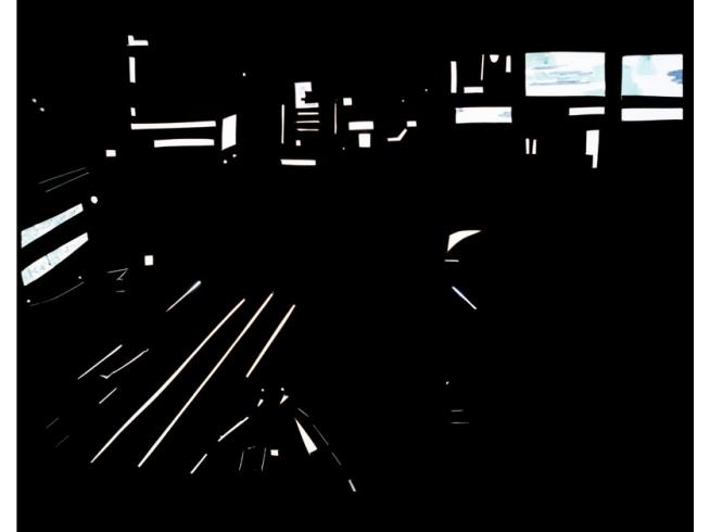 Man meint Straßenzüge und Gebäude zu erkennen, Autoscheinwerfer und Lichtwerbung, Spiegelungen auf dem Wasser. Aber je genauer man hinschaut, desto unwahrscheinlicher wird der scharfe Kontrast zwischen Schwarz und Weiß bzw. farbigen Lichtern. Plötzlich wirken auch die Formen der Lichter ein bisschen zu holzschnittartig. Man wird skeptisch - irgendwas stimmt hier nicht.