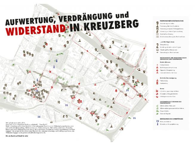 Diesen und anderen lokalen Strategien des Widerstands, die die Weltstadt Berlin zur Kampfzone machen, widmeten sich schließlich unterschiedliche Vorträge und Präsentationen – während auf dem Podium die Initiative Kotti & Co (Ulrike Hamman, Universität Frankfurt), die Rolle des Wohnrechts im Refugee Strike (Napuli Paul Langa, Berlin) und die Kirchen als stadtpolitische Akteure (Andrea Steinke, Freie Universität Berlin) diskutiert wurden, stellte das Kollektiv Orangotango im Foyer sein Mapping-Projekt zum Thema „Aufwertung, Verdrängung und Widerstand in Kreuzberg“ vor.