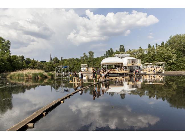 In diesem Sommer verhandelten gleich zwei Projekte reale und utopische Formen des Zusammenlebens, -wohnens und -arbeitens: Das Ausstellungsprojekt An Atlas of Commoning, das vom Juni bis August 2018 im Kunstraum Kreuzberg/Bethanien in Berlin Station gemacht hat, und die Floating University, die vom Mai bis September 2018 in einem Rückhaltebecken neben dem Flughafen Tempelhof stattfand. Versteht sich Zweitere als „innerstädtisches Offshore-Labor für Visionen urbaner Praxis“[1] und bringt diverse Akteure aus unterschiedlichen Kontexten zusammen, will ersteres „den offenen und emanzipatorischen Raum des Wir zurückerobern und neu definieren. Das Projekt fokussiert dabei auf städtische Gemeingüter“, wobei unter Gemeingut „die Schaffung und Bewirtschaftung (materieller und immaterieller) kollektiver Ressourcen und Räume verstanden, die die Grundlage demokratischer Teilhabe bilden“, verstanden wird.[2]