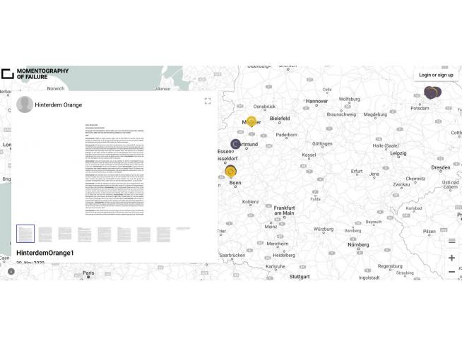 Im Rahmen der Ausstellung Geister, Spuren, Echos: Arbeiten in Schichten in der Akademie der Künste der Welt in Köln (31.10.2020 – 25.04.2021) haben die Kuratorinnen Eva Busch und Madhusree Dutta das Kollektiv Momentography of a failure eingeladen, einen Stadtforschungsworksops zur Gig-Ökonomie durchzuführen. Die Ergebnisse umfassen Interviews mit Lieferdienstmitarbeiter*innen (sogeannten Ridern), Fotostrecken, Corporate Poetry und ein dreidimensionales Modell der Lieferdienstwege. Sie sind Teil der Ausstellung und auf der Webseite dokumentiert. Der Workshop wurde geleitet von Nafiseh Fathollahzadeh, Künstlerin und Begründerin von Momentography of a failure, Parham Mortazavian, Stadtforscher und Mitglied von Momentography of a failure, und Orry Mittenmayer, Aktivist und Gründer von Liefern am Limit, einer Kölner Initiative, die sich für bessere Arbeitsbedingungen für Fahrradkurier*innen von Lebensmittellieferdiensten einsetzt. Die Interviews führte Cathrin Wiedemann.
