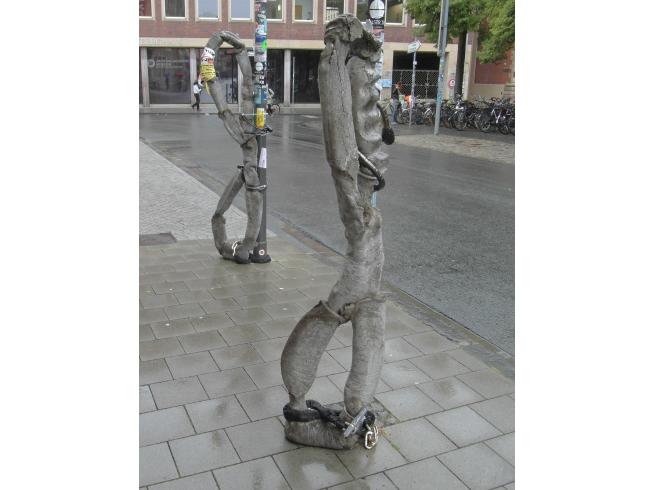 Alle zehn Jahre finden in Münster die Skulptur Projekte statt. Das ist eine Art Freiluftausstellung, die darauf abzielt, „nicht nur mit Kunst, sondern auch für Kunst eine Öffentlichkeit zu schaffen.“[1] Über den Sommer lang sind die Kunstwerke in der ganzen Stadt verteilt und für alle zugänglich. Einige Arbeiten sind nur temporär in der Stadt, während andere dauerhaft im Stadtbild verbleiben. Weil es die Skulptur Projekte seit 1977gibt, haben sich so einige Skulpturen angesammelt. Wenn man in die Stadt kommt, stellt sich daher eine ganz besondere Aufmerksamkeit ein und man geht mit offenem Blick umher immer mit der Frage im Kopf: Ist das zeitgenössische Kunst, Stadt-Deko, Straßenbeleuchtung oder Werbung? Ich mochte es sehr mit dieser geschärften Wahrnehmung durch die Stadt zu gehen, zu gucken und unterschiedlichstes zu entdecken. Was ich auch mochte: dass man an Orte geführt wurde, die man gewöhnlich nicht betreten würde - den verfallenen Eis-Palast im Norden der Stadt, die Eingangshalle der Landesbausparkasse West, die Elephant Lounge mitten in der City. So schärft die Kunst den Blick für die Stadt und umgekehrt. Eine ziemlich fruchtbare Mischung.