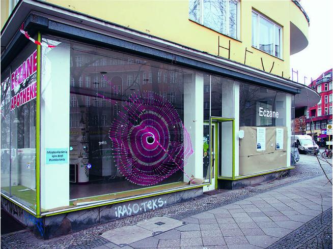 Der öffentliche Raum interessiert mich, weil die Interventionen dann nicht nur im Kunstkontext stattfinden, sondern Teil des Alltags werden. Wenn man mehrere Tage an einem Ort arbeitet, sieht man jeden Tag zur gleichen Zeit mitunter die gleichen Leute vorbeigehen. Man wird angesprochen und in Gespräche verwickelt, was ich toll finde. Die Leute erzählen mir etwas, zum Beispiel über den Laden, der früher dort war. Ich unterbreche meine Arbeit und klebe dann ganz anders weiter. Das mag ich einfach, flexibel auf Situationen zu reagieren. Und dann sind mir die vielen leerstehenden Läden aufgefallen. Am Anfang war ich sehr vorsichtig und habe gefragt, ob ich die Schaufenster benutzen darf. Dabei habe ich gemerkt, dass es sehr schwierig ist, eine Genehmigung zu bekommen. Manchmal wurde Geld verlangt für die Nutzung eines Schaufensters. Schließlich habe ich einfach ohne Erlaubnis angefangen. Ich wurde oft erwischt, aber meistens konnte ich mit der Hausverwaltung einen Kompromiss aushandeln, zum Beispiel dass ich die Arbeiten nach acht Wochen wieder abnehme. Die Arbeiten sind leicht zu entfernen und hinterlassen keine Spuren oder Schäden. Mit den CUTS möchte ich indirekt auf die Gentrifizierung aufmerksam machen, aber in erster Linie nehme ich mir einfach den leeren Raum.