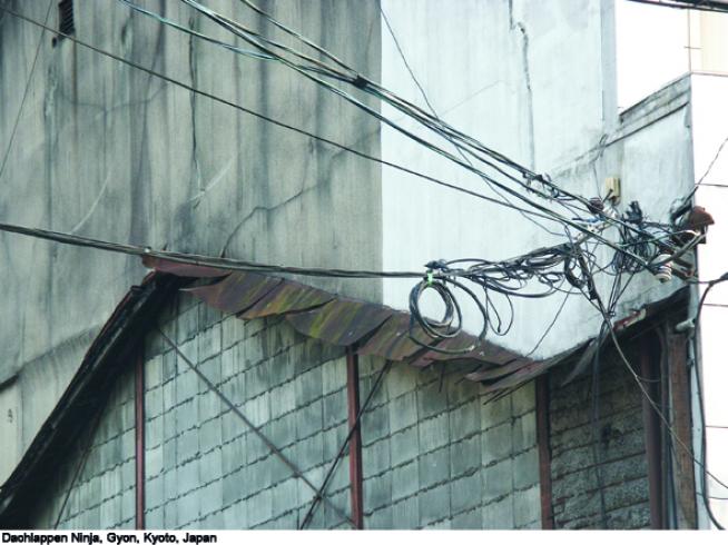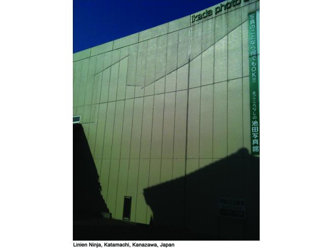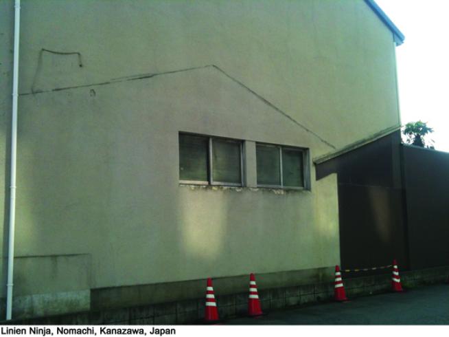 'Ninja Machiya' sind übrig gebliebene Haussilhouetten, die sich noch auf den benachbarten Fassaden abzeichnen und erkennen lassen. Der Künstler Thomas Monses bereiste mehrere Städte, u.a. Kanazawa, Tokio, Osaka, Paris, Berlin und Hamburg, um diese Zeichen urbaner Progression fotografisch festzuhalten. Die Vielzahl unterschiedlicher Formen veranlasste ihn dazu, eine Typologie zu erstellen und in Gestalt eines Posterbuches zu veröffentlichen. Hier veröffentlichen wir Auszüge davon.