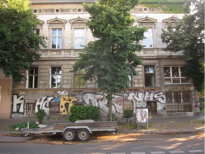 Auf der gegenüberliegenden Seite glitzert der legendäre Graffiti-Shop Overkill, der gern mit seinem alten Underground-Sprayer-Image kokettiert, heute allerdings vor allem Nike-Schuhe für bis zu 200 Euro an Jugendliche verkauft. Ein paar Meter weiter wirds schon interessanter: in einem großen alten Haus mit Putzfassade ist der Jugendladen TEK untergebracht, der vor vielen Jahren von der schicker werdenden Oranienstraße in die Köpenicker Straße ausweichen musste. Hier gab es noch Platz. Der Laden ist bekannt für sein politisches Engagement, wendet sich gegen Rassismus und Sexismus, bietet Möglichkeiten zum Musikmachen und Siebdrucken an.