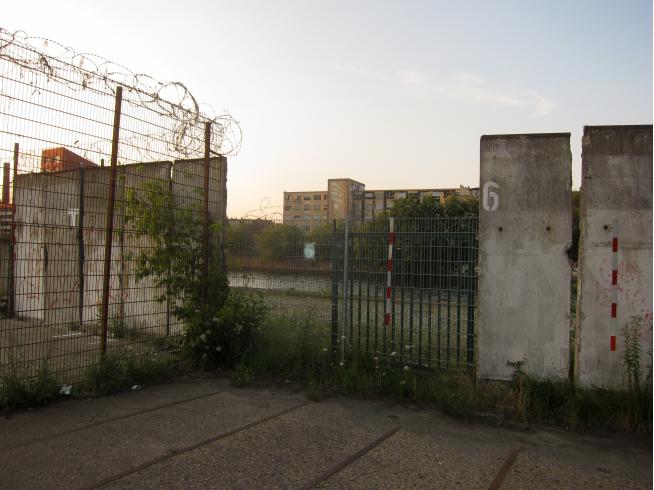 Neben dem Behala-Gelände marschiert man an einem langgestreckten unscheinbaren Gebäude vorbei, das an vorstädtische Industrieparks erinnert. Im Innenhof beherbergt es Getränkemärkte und eine Autovermietung. Das Gelände ist unwirtlich, obwohl es direkten Spreezugang hat und alte Mauerstücke von der Zeit der Teilung erzählen. Hier scheint die Zeit stehen geblieben zu sein. Zumindest noch: denn hier direkt an der Schillingbrücke, wo früher die Grenze verlief, wird hart um die Grundstücke am Wasser gekämpft.
