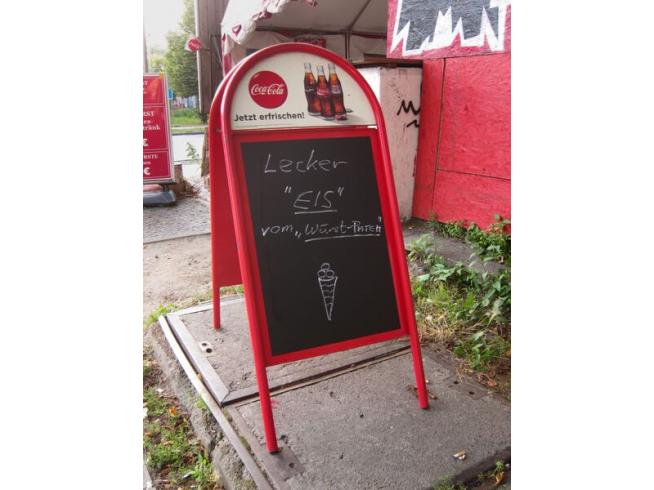 Neben der Platte befindet sich auf dem hinteren Teil des Geländes eine ehemalige Eisfabrik, heute ein weiterer umkämpfter Ort in der Köpenicker Straße. Seit 1896 wurde hier Eis produziert. In den 1990er Jahren stellte der Betrieb die Herstellung ein. Seit 1995 stehen die verbliebenen Gebäude leer. In den denkmalgeschützten Bauten lebten mehrere Jahre Bulgaren und Rumänen – ohne Mietvertrag, ohne Wasser, Strom und Heizung. Als die Eigentümergesellschaft die Bewohner im Dezember 2013 von der Polizei aus dem Haus vertreiben ließ, gab es Proteste von der Initiative „Zwangsräumung verhindern“.[3] Trotz vieler Pläne liegt das Areal weiterhin brach, u.a. weil sich die Eigentümer nicht einig werden. Die vertriebenen Bewohner wurden zeitweise in benachbarten Hotels untergebracht.
