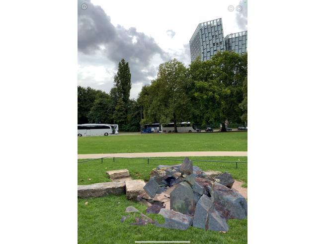 Wir befinden uns im flachen Teil des leicht hügeligen Elbparks, in direkter Nähe zur Reeperbahn und der U-Bahnstation St. Pauli. Während auf der Helgoländer Allee, die den Park durchschneidet, Busse halten und Jugendliche ausspucken, versteckt sich auf der anderen Seite hinter Bäumen das monumentale Bismarck-Denkmal. 2022 wurde ein offener Ideenwettbewerb ausgeschrieben mit dem Ziel, die Restaurierung des aufgrund der kolonialen Verstrickungen von Reichskanzler Otto Fürst von Bismarck in die Kritik geratene Denkmal zu kontextualisieren. Der Wettbewerb endete ohne eine Entscheidung für einen der Entwürfe – dafür wurde er von vielen Kontroversen begleitet. Schlüters und Terbuyken hatten sich gegen eine Bewerbung entschieden. Dennoch kann man ihre Skulptur in ihrer un-monumentalen Erscheinungsweise, dem Fokus auf Demokratiebewegungen und ihre schiere Existenz als Kommentar zum verkorksten Wettbewerb lesen.