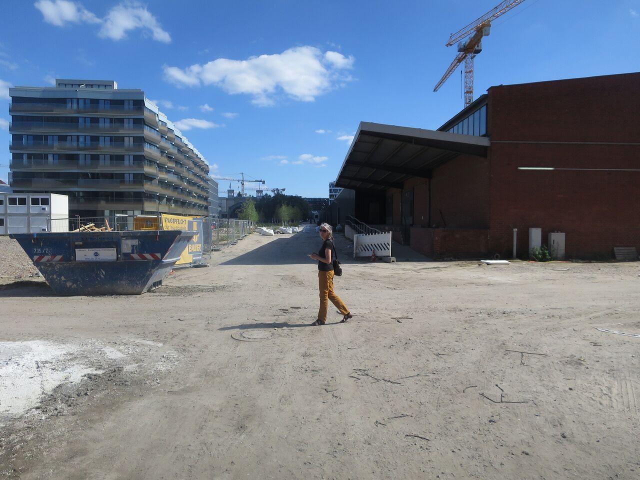 A stillness sets in as we walk through the desolate Heidestr., a pocket of pumping coming from the Nike crossfit center, thumping, bumping. The construction sites however take their day of rest, we pause and take in the stillness of the cranes towering silently.