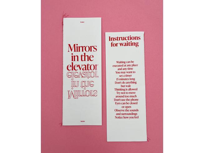 During this project, not just waiting, but also boredom, flow, and distraction were some of the key words for us. We thought about waiting as a physical space — like an airport or elevator — a non-place, possibly enclosed by windows or mirrors, those hazy boundaries.