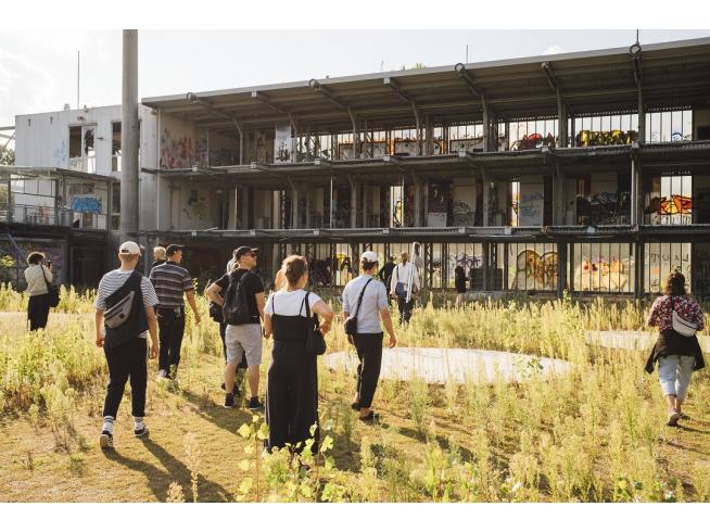 Eine seit einem Jahr aufgegebene, nun weitgehend verwüstete Golf-Abschlaganlage war die abschließende Station der Erkundung: ein ebenso rätselhafter wie inspirierender Freiraum nach der beengten Stadtlandschaft der Bauprojekte und Wohnblocks. Hinter ihrer Absperrung bot die Anlage eine weitläufig-sinnliche Erfahrung, die zur Zerstreuung der Teilnehmenden und zu kreativen Interaktionen führte: Alte Golfbälle schepperten auf den Alu-Blechen der Ruine und viele Ideen, wie die Spekulation mit diesem Filetstück an der Elbe zu unterlaufen sein könnte, begleiteten die Teilnehmenden bei ihrem Rückweg zum Abendprogramm am Mikropol.